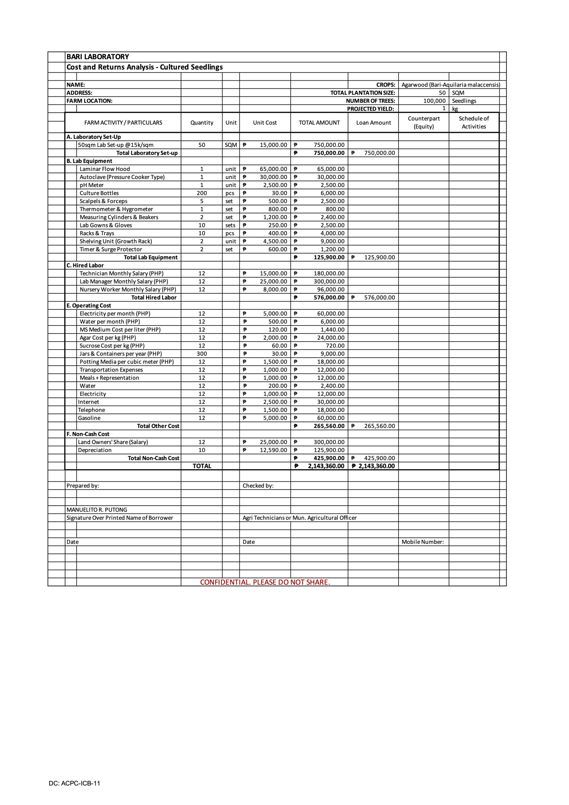 - ISO/GMP-like lab SOPs, plant health certification, DENR/Wildlife Culture Permits for Aquilaria.